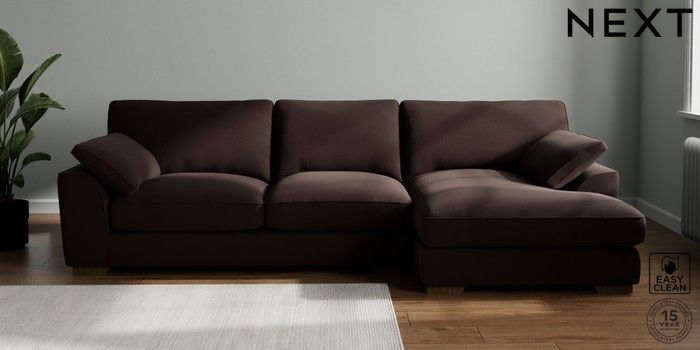 7.3.1 Buy Stamford Grand Relaxed Sit Large Sofa Chaise - Right Hand Fine Chenille Easy Clean Chocolate Brown Large Square Angle - Mid from the Next UK online shop Click here to use our accessible website