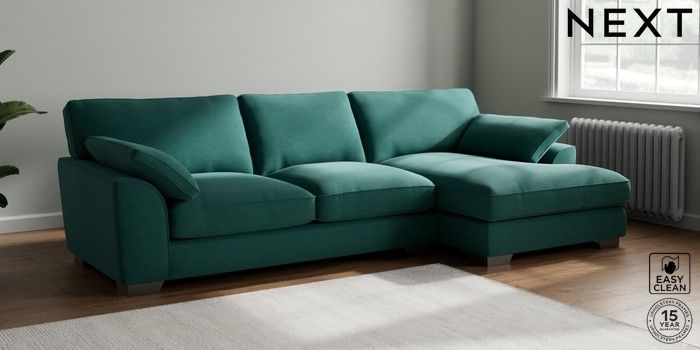 7.3.1 Buy Stamford Grand Relaxed Sit Large Sofa Chaise - Right Hand Fine Chenille Easy Clean Dark Juniper Green Large Square Angle - Gunmetal from the Next UK online shop Click here to use our accessible website