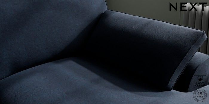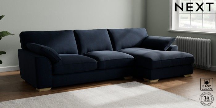 7.3.1 Buy Stamford Grand Relaxed Sit Large Sofa Chaise - Right Hand Fine Chenille Easy Clean Dark Navy Blue Large Square Angle - Light from the Next UK online shop Click here to use our accessible website