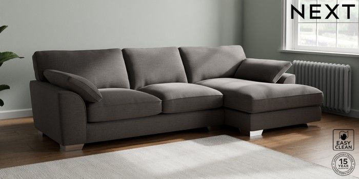 7.3.1 Buy Stamford Grand Relaxed Sit Large Sofa Chaise - Right Hand Fine Chenille Easy Clean Dark Smoke Grey Large Square Angle - Chrome Metal from the Next UK online shop Click here to use our accessible website