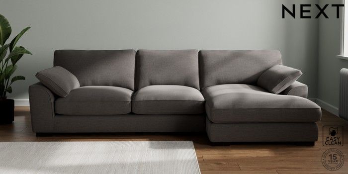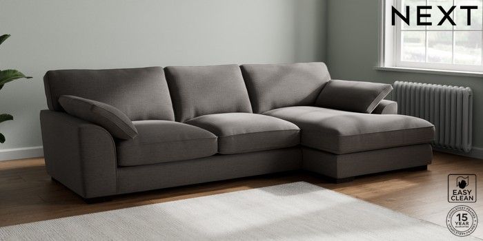7.3.1 Buy Stamford Grand Relaxed Sit Large Sofa Chaise - Right Hand Fine Chenille Easy Clean Dark Smoke Grey Large Square Angle - Dark from the Next UK online shop Click here to use our accessible website