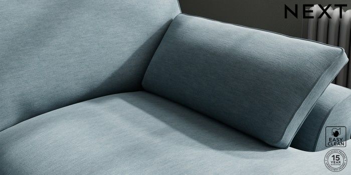7.3.1 Buy Stamford Grand Relaxed Sit Large Sofa Chaise - Right Hand Fine Chenille Easy Clean Mid Blue Large Square Angle - Gunmetal from the Next UK online shop Click here to use our accessible website