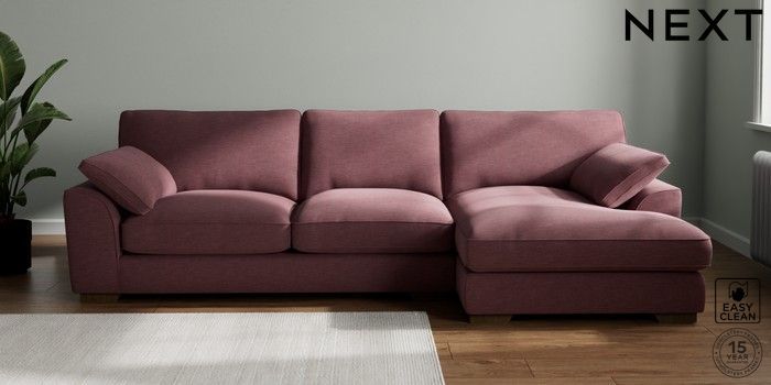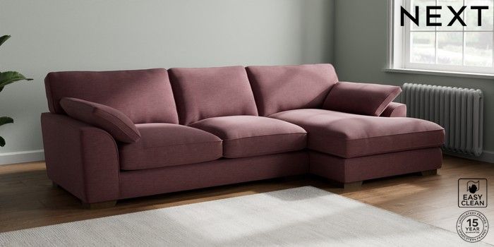 7.3.1 Buy Stamford Grand Relaxed Sit Large Sofa Chaise - Right Hand Fine Chenille Easy Clean Mid Mulberry Purple Large Square Angle - Mid from the Next UK online shop Click here to use our accessible website