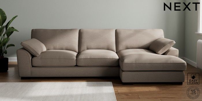 7.3.1 Buy Stamford Grand Relaxed Sit Large Sofa Chaise - Right Hand Fine Chenille Easy Clean Mid Taupe Brown Large Square Angle - Dark from the Next UK online shop Click here to use our accessible website