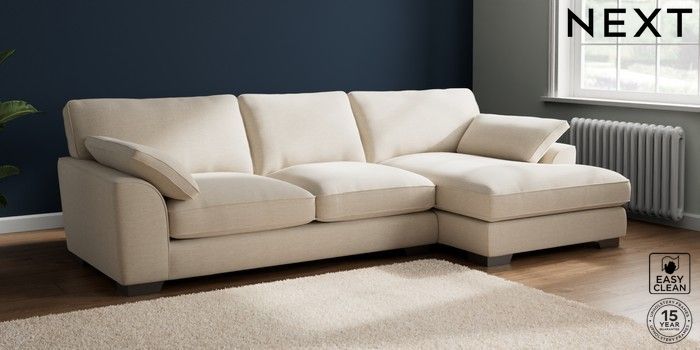7.3.1 Buy Stamford Grand Relaxed Sit Large Sofa Chaise - Right Hand Fine Chenille Easy Clean Oyster Large Square Angle - Gunmetal from the Next UK online shop Click here to use our accessible website