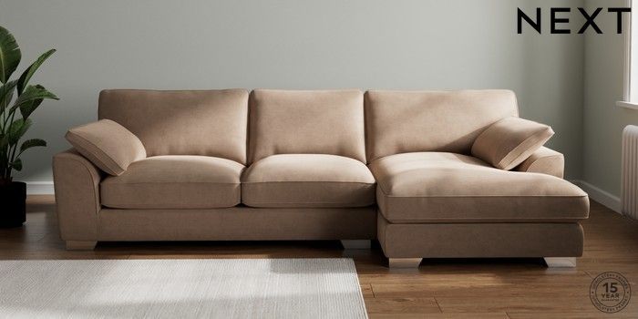 7.3.1 Buy Stamford Grand Relaxed Sit Large Sofa Chaise - Right Hand Luxe Chenille Mid Natural Large Square Angle - Chrome Metal from the Next UK online shop Click here to use our accessible website