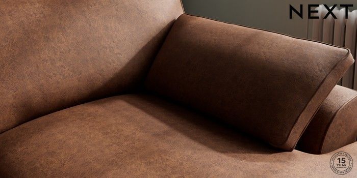 7.3.1 Buy Stamford Grand Relaxed Sit Large Sofa Chaise - Right Hand Monza Faux Leather Easy Clean Chestnut Brown Large Square Angle - Chrome Metal from the Next UK online shop