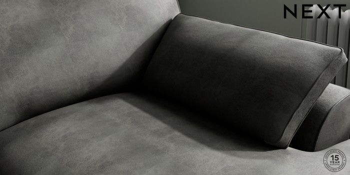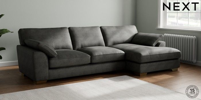 7.3.1 Buy Stamford Grand Relaxed Sit Large Sofa Chaise - Right Hand Monza Faux Leather Easy Clean Dark Grey Large Square Angle - Brushed Brass from the Next UK online shop Click here to use our accessible website