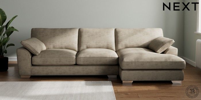 7.3.1 Buy Stamford Grand Relaxed Sit Large Sofa Chaise - Right Hand Monza Faux Leather Easy Clean Mink Brown Large Square Angle - Chrome Metal from the Next UK online shop