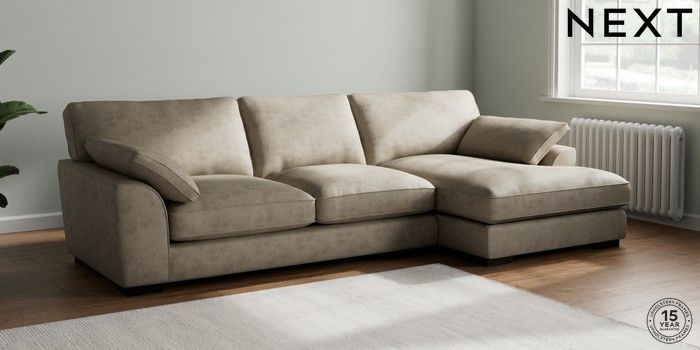 7.3.1 Buy Stamford Grand Relaxed Sit Large Sofa Chaise - Right Hand Monza Faux Leather Easy Clean Mink Brown Large Square Angle - Dark from the Next UK online shop Click here to use our accessible website