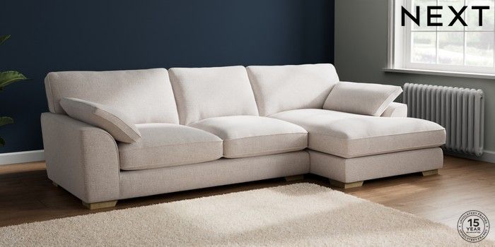 7.2.6 Buy Stamford Grand Relaxed Sit Large Sofa Chaise - Right Hand Multi Weave Oyster Large Square Angle - Light from the Next UK online shop Click here to use our accessible website