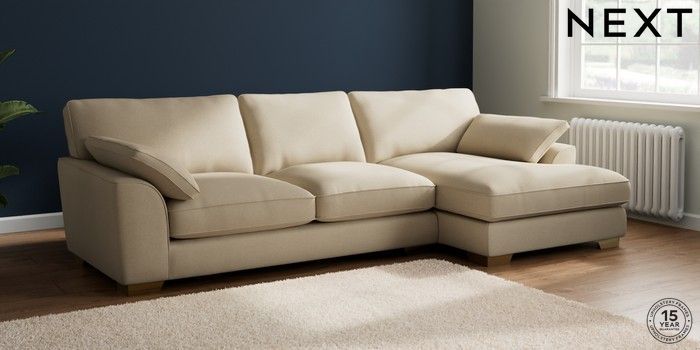 7.3.1 Buy Stamford Grand Relaxed Sit Large Sofa Chaise - Right Hand Natural Mix Light Natural Large Square Angle - Brushed Brass from the Next UK online shop Click here to use our accessible website