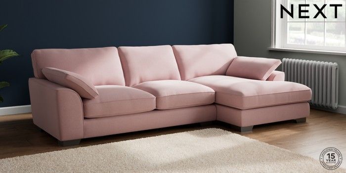 7.3.1 Buy Stamford Grand Relaxed Sit Large Sofa Chaise - Right Hand Natural Mix Light Rose Pink Large Square Angle - Gunmetal from the Next UK online shop Click here to use our accessible website
