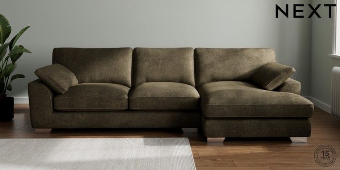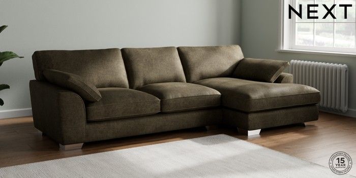 7.3.1 Buy Stamford Grand Relaxed Sit Large Sofa Chaise - Right Hand Plush Chenille Moss Green Large Square Angle - Chrome Metal from the Next UK online shop Click here to use our accessible website