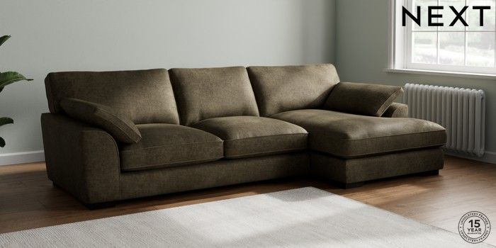 7.3.1 Buy Stamford Grand Relaxed Sit Large Sofa Chaise - Right Hand Plush Chenille Moss Green Large Square Angle - Dark from the Next UK online shop Click here to use our accessible website