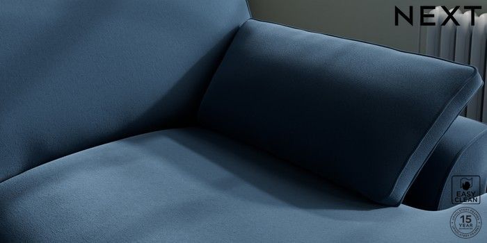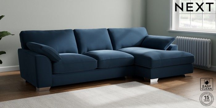 7.3.1 Buy Stamford Grand Relaxed Sit Large Sofa Chaise - Right Hand Plush Velvet Easy Clean Airforce Blue Large Square Angle - Chrome Metal from the Next UK online shop Click here to use our accessible website