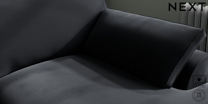 7.3.1 Buy Stamford Grand Relaxed Sit Large Sofa Chaise - Right Hand Plush Velvet Easy Clean Charcoal Grey Large Square Angle - Brushed Brass from the Next UK online shop Click here to use our accessible website