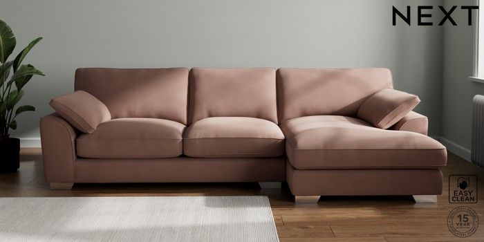 7.3.1 Buy Stamford Grand Relaxed Sit Large Sofa Chaise - Right Hand Plush Velvet Easy Clean Mid Natural Large Square Angle - Chrome Metal from the Next UK online shop Click here to use our accessible website
