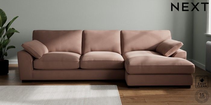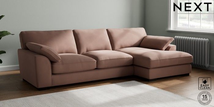 7.3.1 Buy Stamford Grand Relaxed Sit Large Sofa Chaise - Right Hand Plush Velvet Easy Clean Mid Natural Large Square Angle - Dark from the Next UK online shop Click here to use our accessible website