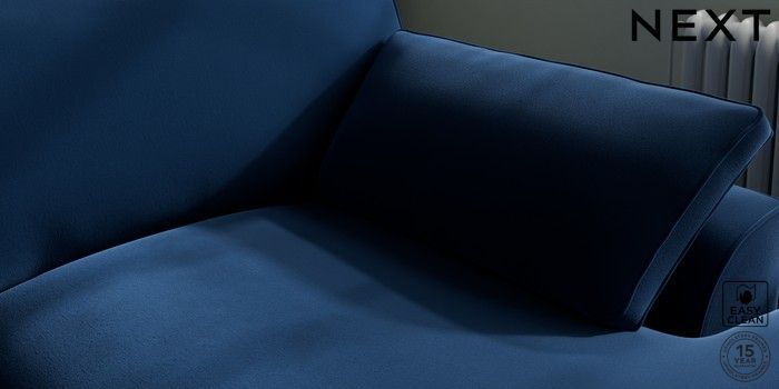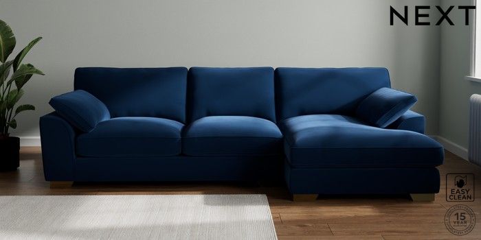 7.3.1 Buy Stamford Grand Relaxed Sit Large Sofa Chaise - Right Hand Plush Velvet Easy Clean Navy Blue Large Square Angle - Brushed Brass from the Next UK online shop Click here to use our accessible website