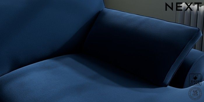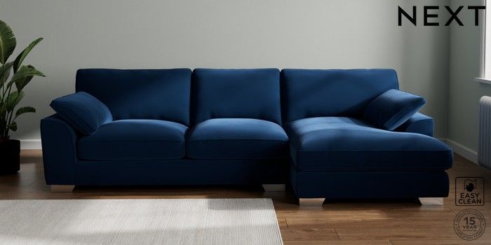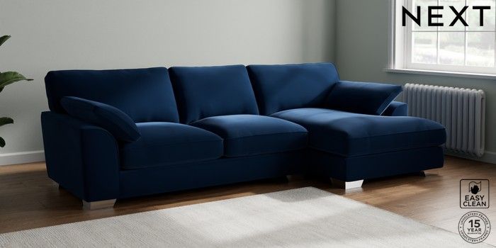 7.3.1 Buy Stamford Grand Relaxed Sit Large Sofa Chaise - Right Hand Plush Velvet Easy Clean Navy Blue Large Square Angle - Chrome Metal from the Next UK online shop Click here to use our accessible website