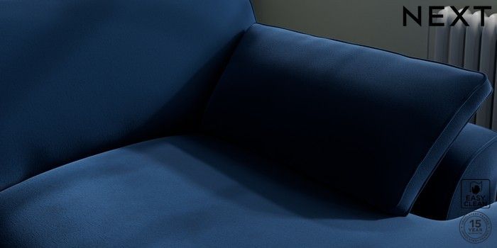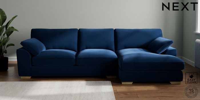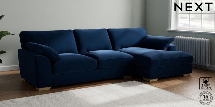 7.3.1 Buy Stamford Grand Relaxed Sit Large Sofa Chaise - Right Hand Plush Velvet Easy Clean Navy Blue Large Square Angle - Light from the Next UK online shop Click here to use our accessible website