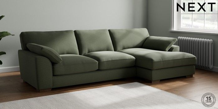 7.3.1 Buy Stamford Grand Relaxed Sit Large Sofa Chaise - Right Hand Relaxed Linen Look Dark Green Large Square Angle - Mid from the Next UK online shop Click here to use our accessible website