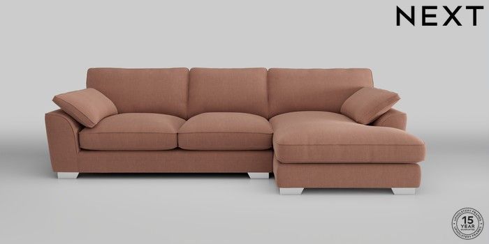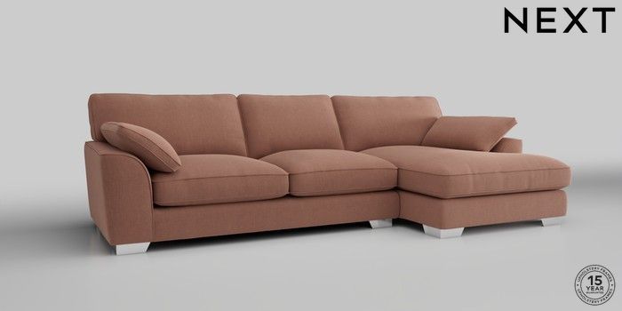 7.3.1 Buy Stamford Grand Relaxed Sit Large Sofa Chaise - Right Hand Relaxed Linen Look Light Rust Brown Large Square Angle - Chrome Metal from the Next UK online shop Click here to use our accessible website