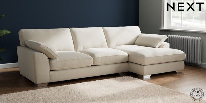 7.3.1 Buy Stamford Grand Relaxed Sit Large Sofa Chaise - Right Hand Relaxed Linen Look Oyster Large Square Angle - Chrome Metal from the Next UK online shop Click here to use our accessible website