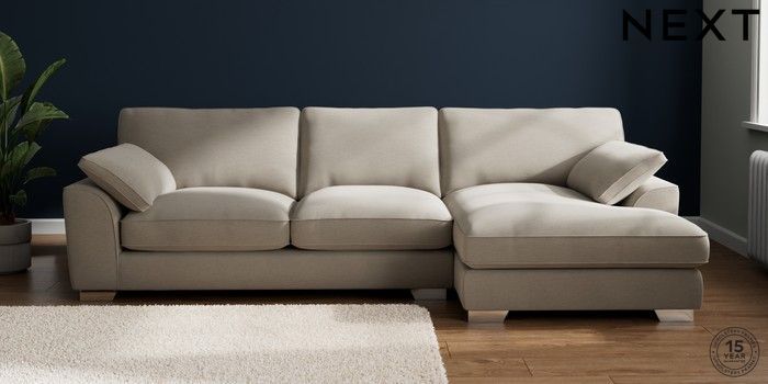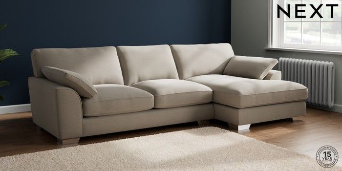 7.3.1 Buy Stamford Grand Relaxed Sit Large Sofa Chaise - Right Hand Ripple Chenille Light Natural Large Square Angle - Chrome Metal from the Next UK online shop Click here to use our accessible website