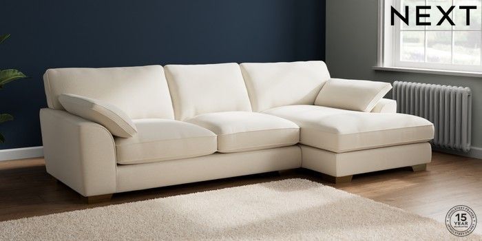 7.3.1 Buy Stamford Grand Relaxed Sit Large Sofa Chaise - Right Hand Ripple Chenille Oyster Large Square Angle - Brushed Brass from the Next UK online shop Click here to use our accessible website