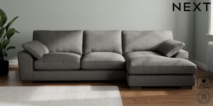 7.3.1 Buy Stamford Grand Relaxed Sit Large Sofa Chaise - Right Hand Tweedy Blend Easy Clean Dark Grey Large Square Angle - Mid from the Next UK online shop Click here to use our accessible website