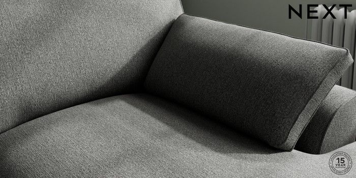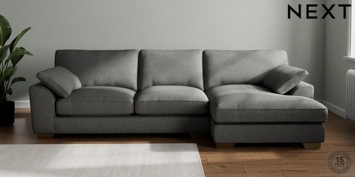 7.3.1 Buy Stamford Grand Relaxed Sit Large Sofa Chaise - Right Hand Tweedy Chenille Dark Grey Large Square Angle - Brushed Brass from the Next UK online shop Click here to use our accessible website