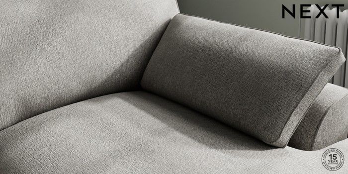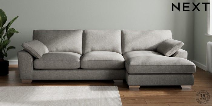 7.3.1 Buy Stamford Grand Relaxed Sit Large Sofa Chaise - Right Hand Tweedy Chenille Mid Grey Large Square Angle - Chrome Metal from the Next UK online shop Click here to use our accessible website