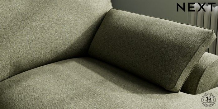 7.3.1 Buy Stamford Grand Relaxed Sit Large Sofa Chaise - Right Hand Tweedy Chenille Mid Moss Green Large Square Angle - Brushed Brass from the Next UK online shop Click here to use our accessible website