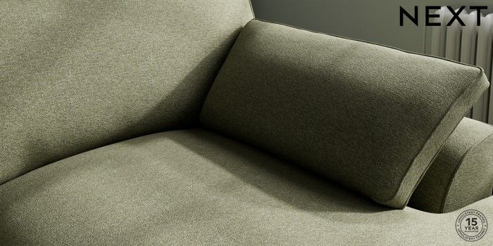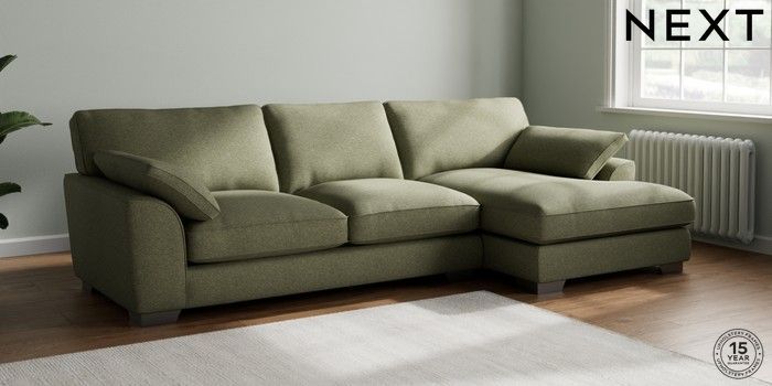7.3.1 Buy Stamford Grand Relaxed Sit Large Sofa Chaise - Right Hand Tweedy Chenille Mid Moss Green Large Square Angle - Gunmetal from the Next UK online shop Click here to use our accessible website