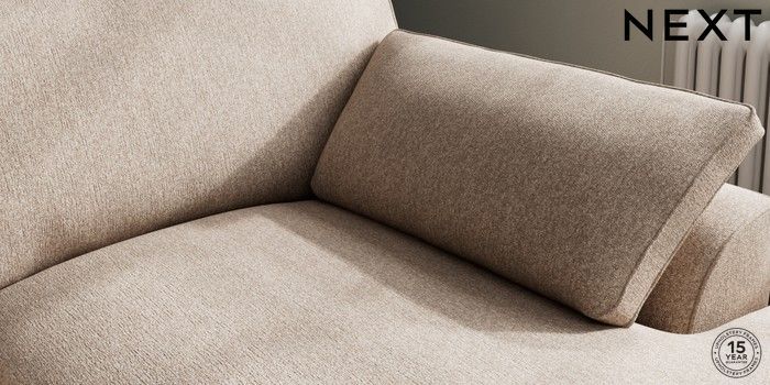 7.3.1 Buy Stamford Grand Relaxed Sit Large Sofa Chaise - Right Hand Tweedy Chenille Mid Natural Large Square Angle - Gunmetal from the Next UK online shop Click here to use our accessible website