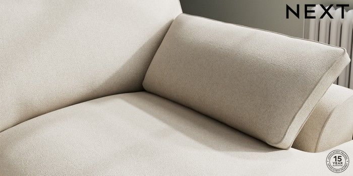 7.3.1 Buy Stamford Grand Relaxed Sit Large Sofa Chaise - Right Hand Tweedy Chenille Oyster Large Square Angle - Brushed Brass from the Next UK online shop Click here to use our accessible website