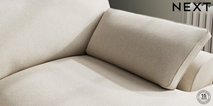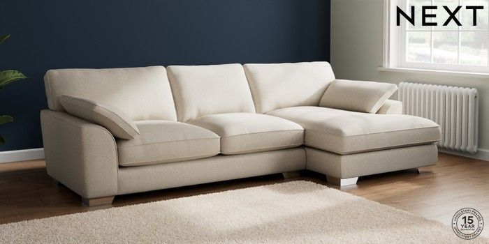 7.3.1 Buy Stamford Grand Relaxed Sit Large Sofa Chaise - Right Hand Tweedy Chenille Oyster Large Square Angle - Chrome Metal from the Next UK online shop Click here to use our accessible website