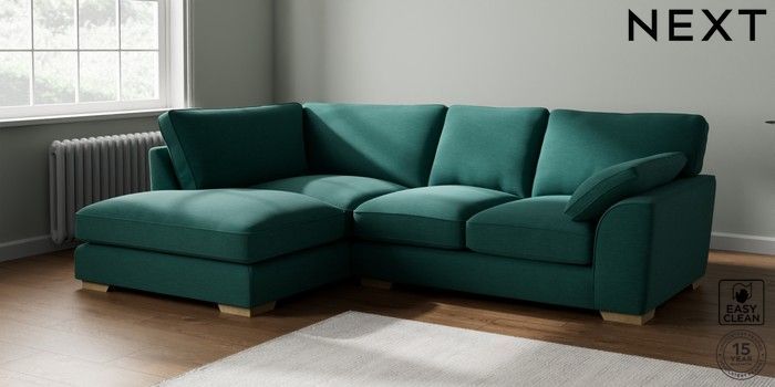 7.2.10 Buy Stamford Grand Relaxed Sit Medium Corner Chaise - Left Hand Fine Chenille Easy Clean Dark Juniper Green Large Square Angle - Light from the Next UK online shop Click here to use our accessible website