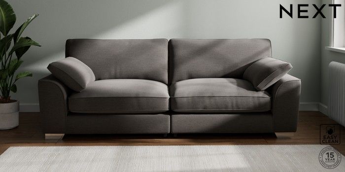 7.3.1 Buy Stamford Grand Relaxed Sit 4 Seater Sofa Fine Chenille Easy Clean Dark Smoke Grey Large Square Angle - Chrome Metal from the Next UK online shop Click here to use our accessible website