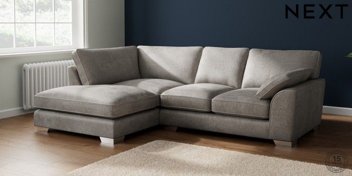 7.2.10 Buy Stamford Grand Relaxed Sit Medium Corner Chaise - Left Hand Plush Chenille Light Grey Large Square Angle - Chrome Metal from the Next UK online shop Click here to use our accessible website