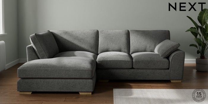 7.3.1 Buy Stamford Grand Relaxed Sit Medium Corner Chaise - Left Hand Chunky Chenille Dark Grey Large Square Angle - Light from the Next UK online shop