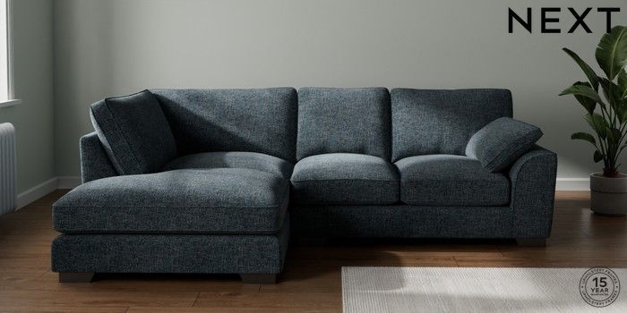 7.3.1 Buy Stamford Grand Relaxed Sit Medium Corner Chaise - Left Hand Chunky Chenille Dark Navy Blue Large Square Angle - Gunmetal from the Next UK online shop Click here to use our accessible website