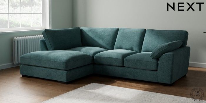 7.2.10 Buy Stamford Grand Relaxed Sit Medium Corner Chaise - Left Hand Chunky Chenille Mid Teal Green Large Square Angle - Dark from the Next UK online shop Click here to use our accessible website