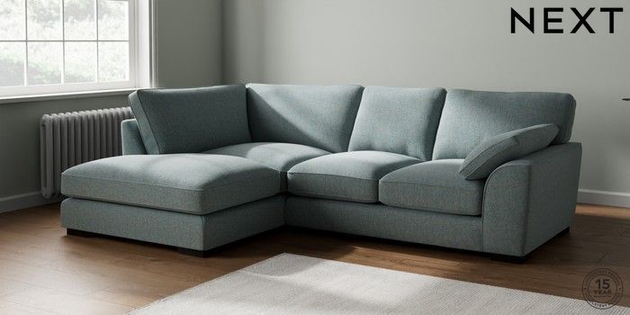 7.2.10 Buy Stamford Grand Relaxed Sit Medium Corner Chaise - Left Hand Chunky Marl Mid Blue Large Square Angle - Dark from the Next UK online shop Click here to use our accessible website