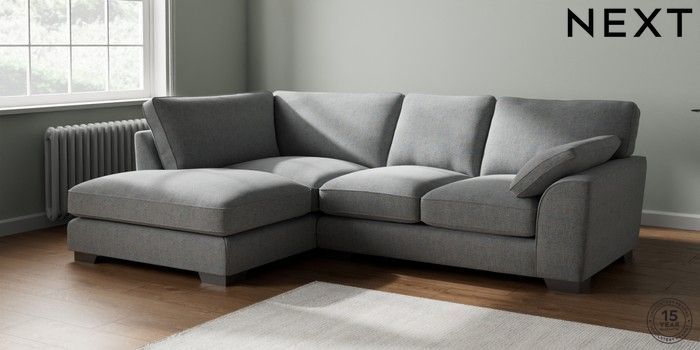 7.3.1 Buy Stamford Grand Relaxed Sit Medium Corner Chaise - Left Hand Chunky Marl Mid Grey Large Square Angle - Gunmetal from the Next UK online shop Click here to use our accessible website