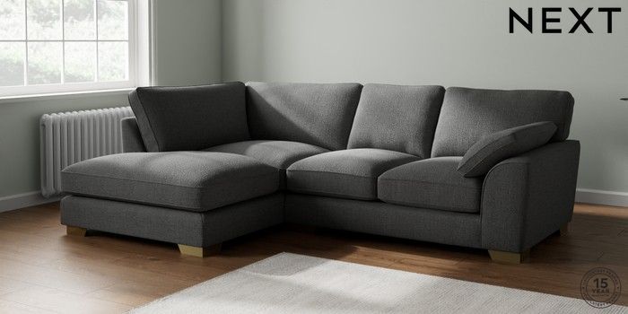 7.2.10 Buy Stamford Grand Relaxed Sit Medium Corner Chaise - Left Hand Chunky Texture Dark Grey Large Square Angle - Brushed Brass from the Next UK online shop Click here to use our accessible website