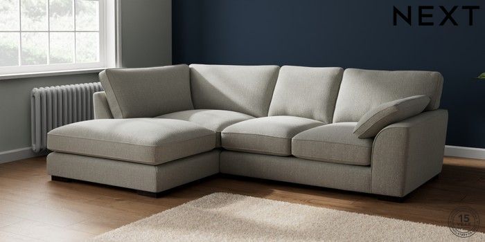 7.2.10 Buy Stamford Grand Relaxed Sit Medium Corner Chaise - Left Hand Chunky Texture Dove Large Square Angle - Dark from the Next UK online shop Click here to use our accessible website