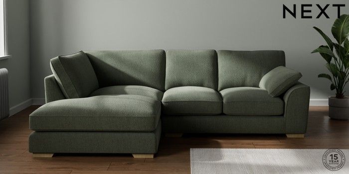6.12.13 Buy Stamford Grand Relaxed Sit Medium Corner Chaise - Left Hand Chunky Texture Mid Forest Green Large Square Angle - Light from the Next UK online shop Click here to use our accessible website